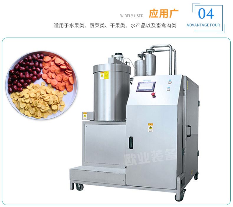 保證產品健康安全。該設備與食品直接接觸的主要部件全部采用不銹鋼制作,符合HACCP的要求。而且它的軸封關鍵部件全部采用德國產品,保證了產品的質量。另外,它還配有專門的洗油裝置及排污口,潔凈衛生。并且該設備在真空負壓閥位置也配有專用的消音設備,能夠減少噪音,同時防止灰塵進入油炸鍋內。