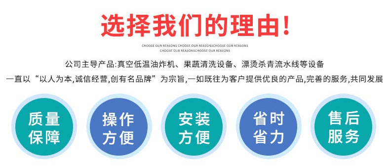 保證產品健康安全。該設備與食品直接接觸的主要部件全部采用不銹鋼制作,符合HACCP的要求。而且它的軸封關鍵部件全部采用德國產品,保證了產品的質量。另外,它還配有專門的洗油裝置及排污口,潔凈衛生。并且該設備在真空負壓閥位置也配有專用的消音設備,能夠減少噪音,同時防止灰塵進入油炸鍋內。